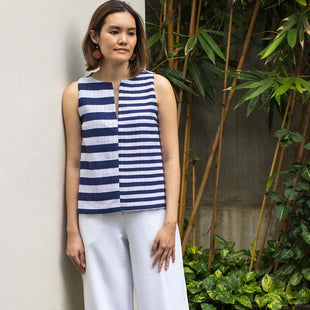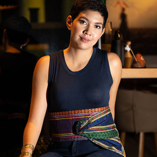 Pnay, launched in 2018, is a brand that turns indigenous hand-woven fabrics into contemporary wear. Our goal is to keep the weaving traditions alive. We make indigenous fabrics so “ordinary” we can use it for everyday wear. We use simple silhouettes, with the least number of cuts possible, to maintain the fabric’s integrity. The fabric should be the centerpiece of the piece. We work primarily with Yakan fabric from Zamboanga City, our hometown, as well as fabrics from other areas in the Philippines.